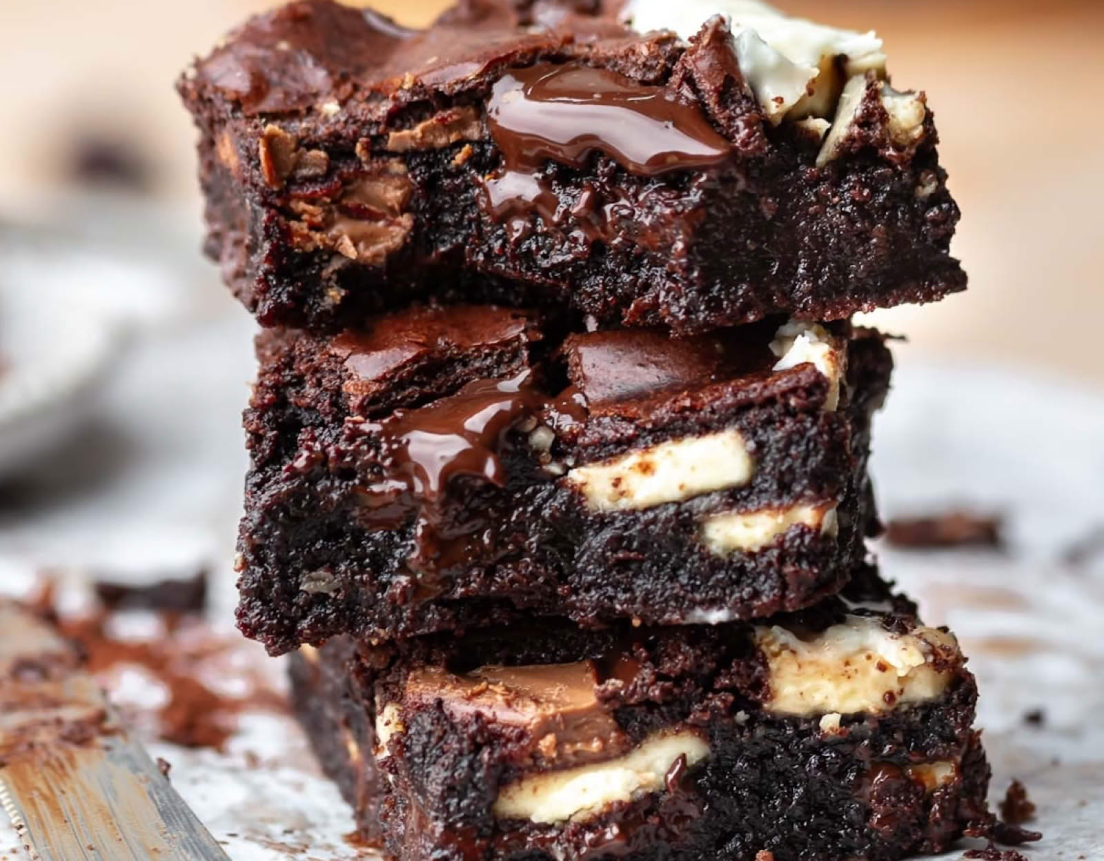 Add flour, NIB cocoa powder and salt and stir until smooth. Stir in chopped NIB chocolate block or bar, pour into pan.
